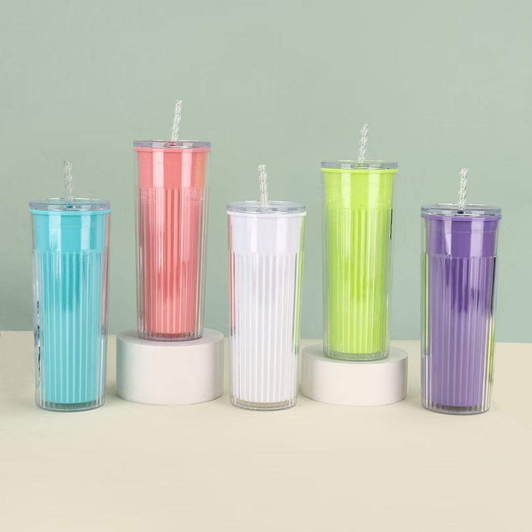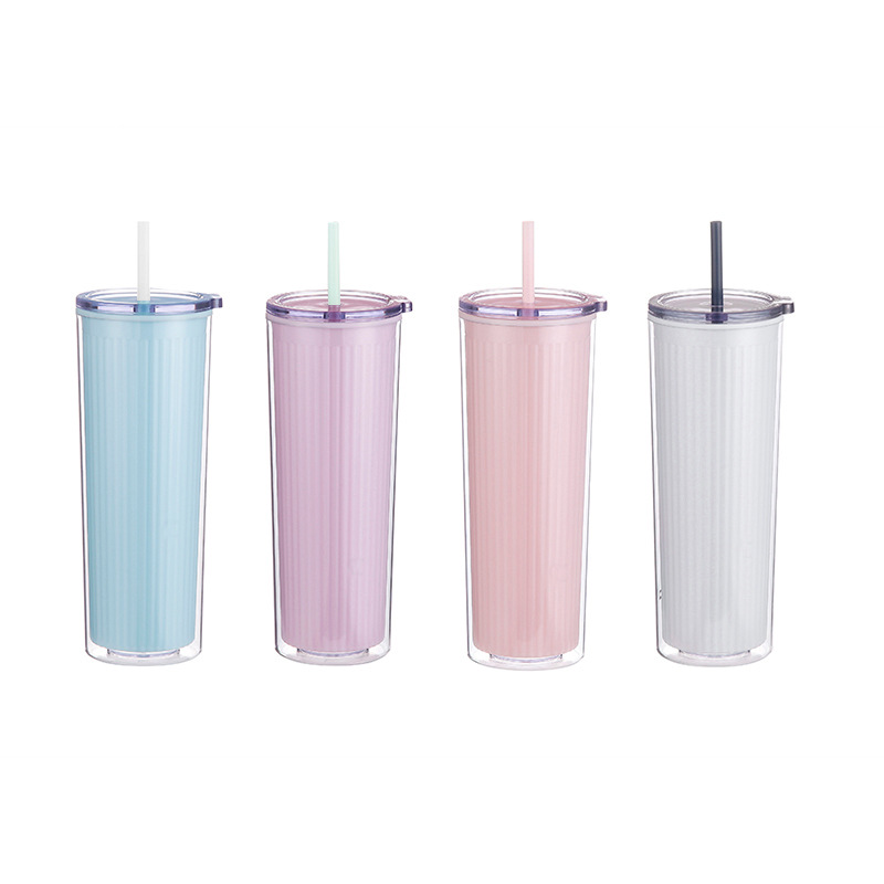 720ml Double-layer Fresh Color Insulated Cup with Straw